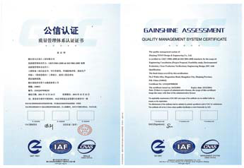 公司自2009年實行全面質量管理后,管理體系不斷深化。2010年貫徹GB/T19001-1994質量體系并獲得認證,2013年按照2000版標準,按系統(tǒng)的過程方法對產品質量進行管理。2014年公司將保護環(huán)境、保障員工及相關方職業(yè)健康安全納入管理范疇,依據GB/T19001-2014 idt ISO9001:2014《質量管理體系要求》、GB/T24001-2014 idt ISO14001:2014《環(huán)境管理體系 要求及使用指南》、GB/T28001-2014《職業(yè)健康安全管理體系規(guī)范》標準實施質量、環(huán)境、職業(yè)健康安全一體化管理體系,并通過認證審核。